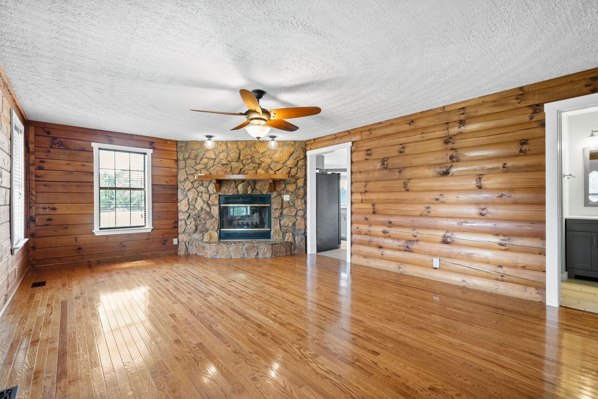Located in the peaceful Backwoods Subdivision, 110 Jerry Smith Rd. offers a unique blend of rustic charm and functional living on over 2 acres. This log cabin-style home features a warm, inviting interior with a stunning stone fireplace, log walls, and a layout designed for both comfort and versatility. The kitchen includes stainless steel appliances and flows seamlessly into the dining and laundry areas. The main level offers a primary suite with ensuite bath, along with two additional bedrooms and a full guest bath. Upstairs, you'll find flexible bonus spaces ideal for additional bedrooms, office, or hobby use. Outside, the property is equipped for both lifestyle and storage, featuring a detached garage with an insulated cold room, carport, and ample space for ATVs, equipment, or animals. Assumable mortgage opportunity may be available-contact agent for details. Vacant and easy to show-schedule your private tour today.